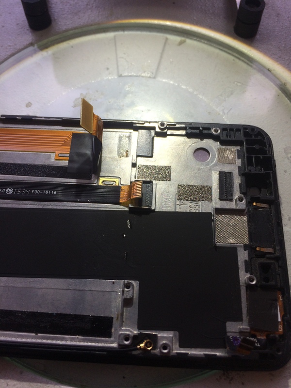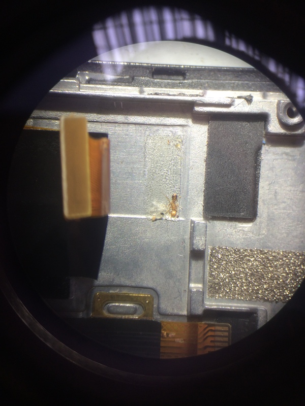 Но это не все, досталось и дешифратору тача, который на шлейфе, несмотря на компаунд, он в кизячках, сковыриваем компаунд, смотрим, не катастрофа, дороги целые, помыть, пропаять и порядок.