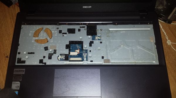 Собираю окончательно, проверяю клавиатуру, обычно на залитиках клавы частенько мрут. Клава вся живая. Перерыл 2 здоровых коробки дохлых клав, на нашел кнопку, расплавленную заменить, подрезал что бы она хотя бы нажималась.