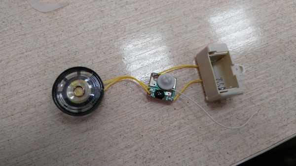 Посадим батарейный отсек и динамик на термоклей, чтоб не болталось в корпусе