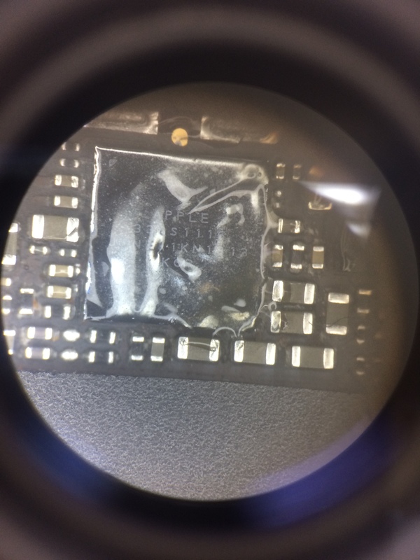 Как уже стало понятно: ничего не изменилось, идем прозванивать всю обвязку коннектора, всю цепь аудиокодека, все оказалось в норме, последним претендентом становится аудиокодек. Чистим компаунд, добавляем флюса и греем