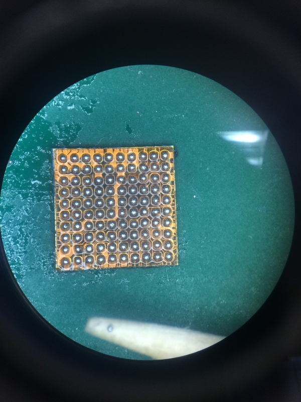Дергаем аудиокодек с iPhone 5C, кидаем в трафарет, накатываем шары, я использую шарики 0.2mm