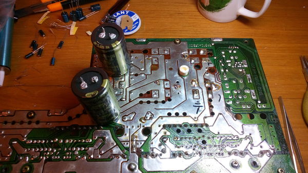 Меняем дохлые электролиты на других платах. Часто встречается такое творчество: