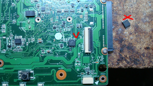 Э-э-э друзья мои, я такие менял только сколотые, сами они не мрут, дело не в видике. Греть его бесполезно, а отключать для первичной диагностики рано. Прошьем ка мы ему биос, инженеркой с чистым МЕ. Снимаем флешку и в программатор ее, и вот те на, новость, битая она. Не проходит проверку, т.е. то что считалось не совпадает с содержимым на флешке. Пробовал и ксилтек, и минипро, и мой программатор, картина одинаковая, примерно в одном и том же месте ошибка.