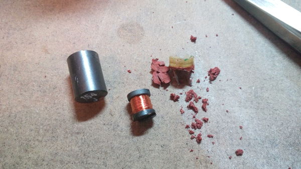 К сожалению такой же в завалах не оказалось (уже их все поставил), значит буду пытаться ее починить. В торце она залиты твердым герметиком, поэтому решил попробовать "размочить" его при помощи ацетона. Катушку оставил на ночь в ацетоне. И все получилось!