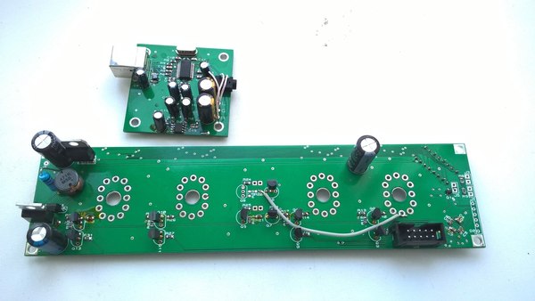Торчащие проводки - к разъемам и кнопкам. Тем временем заказали финальный вариант корпуса из ясеня, красивый, лакированный. К сожалению изготовитель корпуса очень сильно подвел и затянул изготовление на несколько месяцев, постоянно отмазываясь (маляр заболел, машина сломалась, лак замерз и испортился, арендатор помещение закрыл и т.д.). В конце концов все-таки получили корпуса и заказали у него же еще партию, но уже с договором и оговоренными сроками, с пени. Увы, он опять подвел и уже нарушил сроки, ждем что будет. Сейчас ищу другого изготовителя, который сделал бы не хуже, но за адекватное время.