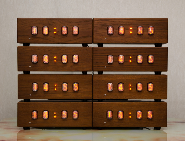 Nixie Time это название наших часов, в общем и целом такие часы называются Nixie Clock или часы на газоразрядных индикаторах. Вся суть таких часов в использовании теплых ламповых индикаторов. Внутри стеклянной колбы неон и отдельные спирали для каждого символа.