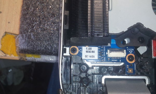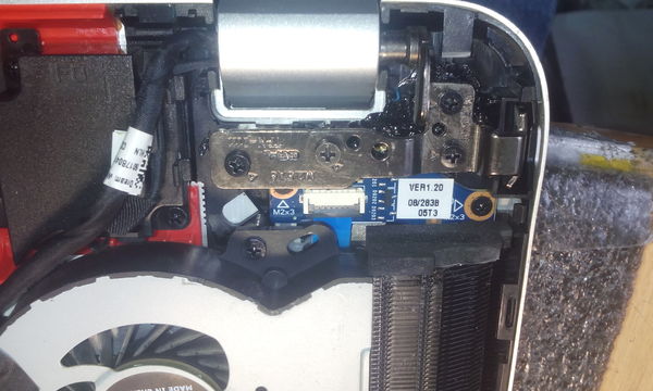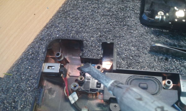 И так ноутбук HP 17'. Особенная сложность в том, что колодцев крепления петель много, все крепится не к дну, а к верхней части основания, которая тоже не особо крепкая.
