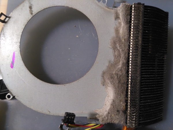 Клиент также пожаловался, что ноутбук жутко тормозит. Части пластиковых колодцев, сломавшись, заклинили куллер.