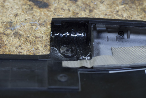 Клеим, эпоксидка-стеклоткань, навык и знания как заставить эпоксидку держаться на ровной поверхности. Может показаться что оно уродское, поверьте опыту оно держит отлично, у нас например 3 месяца гарантии (на любые работы), никогда не возвращались. Было что приходили через пол года, особенно блядские HP M6 отрывалась вторая петля, а то что я клеил держится.
