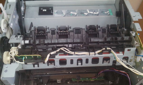 Итак, МФУ сабж, по словам клиента: периодически не припекал тонер, затем полезли какие-то лохмотья, и что-то шумит.