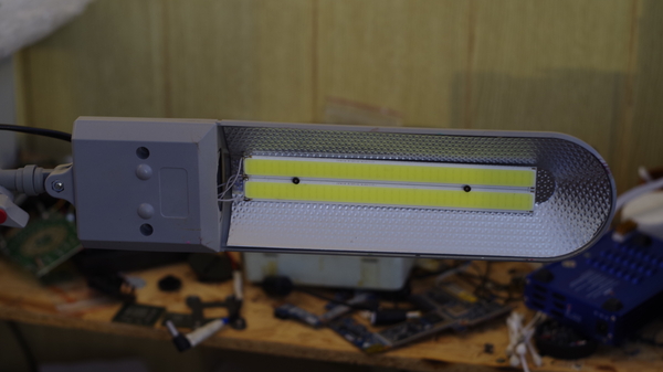 Когда я делал домашний верстак, я о подсветке и не думал, обходился настольной лампой. Но, паяние мелочи вечерами напрягало недостатком света. А тут знакомый припер из Китая готовые ленты на алюминиевых пластинах, на 400мА каждая. Я тут же купил две длинных и две коротких. Такого типа.