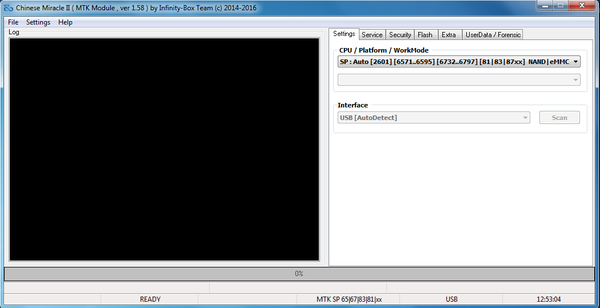 Исправим это досадное недоразумение. Подключаем бокс к компьютеру, запускаем программу CM2MTK, на 1 вкладке выбираем из списка проц, на котором собран аппарат.