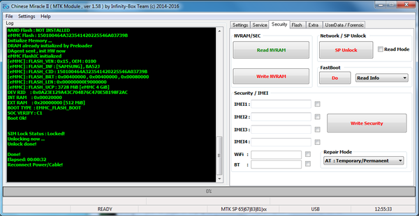 Отключаем аппарат. На этой же вкладке жмём SP Unlock, снова подключаем девайс.