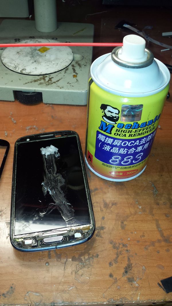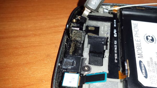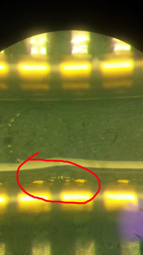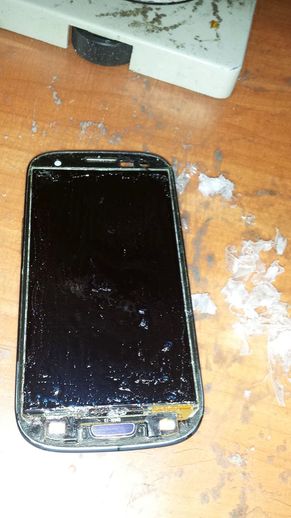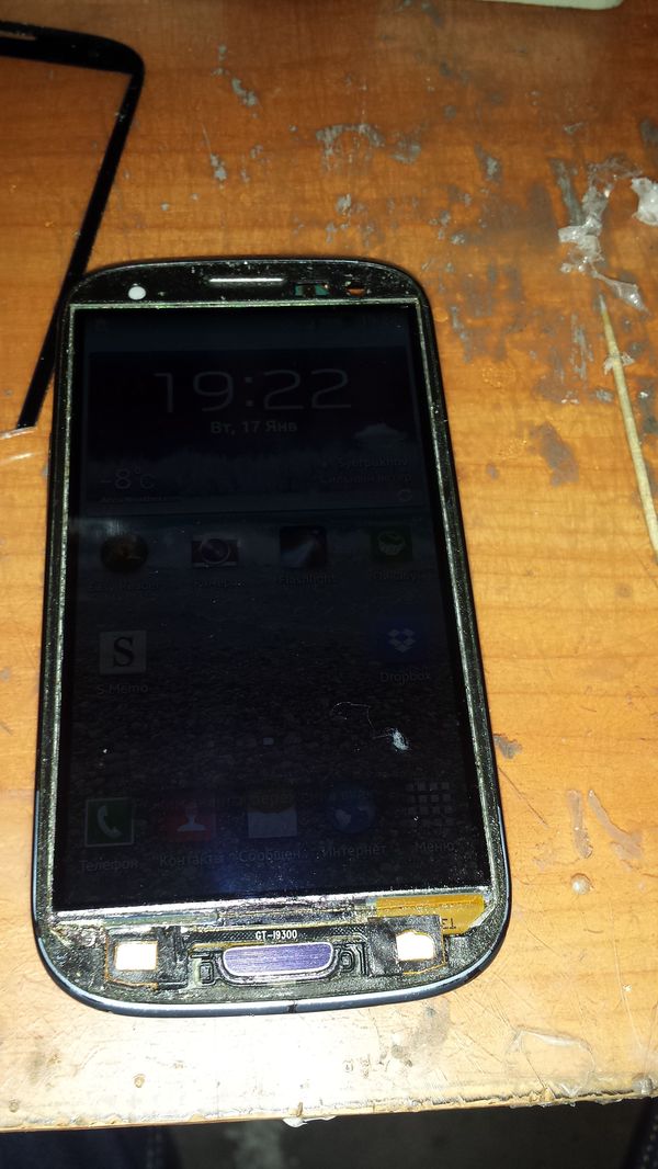На этом дисплейном модуле, до этого уже менялось стекло и УФ клей попал в разъем подключения экрана.