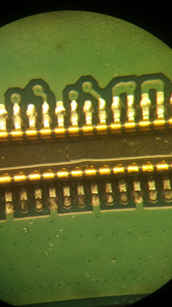 При моих навыках не восстановлю точно, у меня даже лупы нет не то что микроскопа. Да и честно говоря, фиг с ним, пойдет как донор или для тестов "на столе". Много оборудования у нас гибнет по разным причинам. То украдут, то электрики две фазы дадут, то дождём/водой зальёт, то гроза вжарит так что оборудование проскочившим разрядом аж приваривается друг к другу (след на корпусе от разряда после одной из гроз)