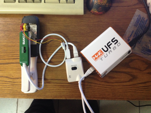 Делать будем при помощи программатора UFS Turbo и прищепки Bakku.