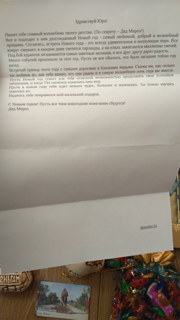 @zolden31, Твой подарок добрался до меня в целости и сохранности, спасибо огромное)