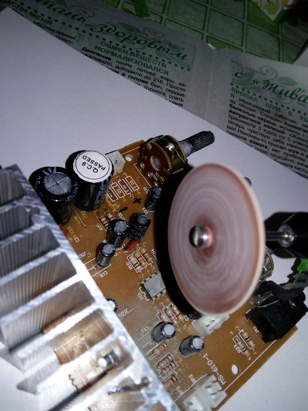 Ну и подключаем плату к динамикам (колонкам) и блоку питания, подаём питание и слушаем шум - тишина, а потом подаём звук с источника звука (ноутбук, телефон, плеер и т.п.), и, как говорится - вуаля, всё работает и НЕ шуршит ))