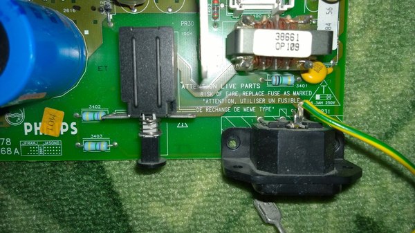 Воткнул предохранитель на 3А,включил в сеть,в режиме STAND-BY напряжение +5V немного занижено,около 4.5V. Нажал на пульте кнопку включения,раздался щелчок рэле и сверкнул предохранитель.
