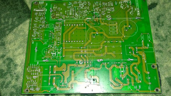 Далее выпаял диодный мост для проверки,оказался исправен,а вот силовой транзистор IRFPC60 имел короткое замыкание на всех трёх ножках. Заменил его на Toshiba TK09H90A,ситуация с предохранителем повторилась,транзистор выбило.