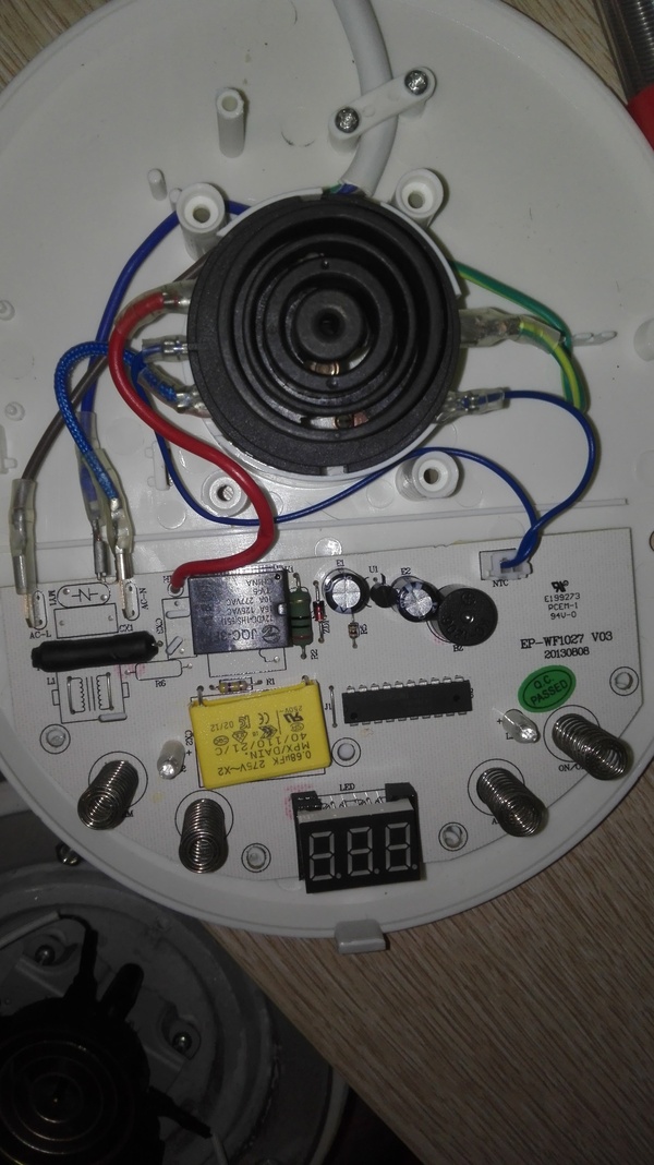 А вот в чём собсна проблема - не включается. Когда обычно чайник ставишь на стенд - он загорается. А в один прекрасный момент он просто тупо не включился. Соответственно панель не работает. Самоё главное спираль на прозвон пищит, не знаю норм это или нет.