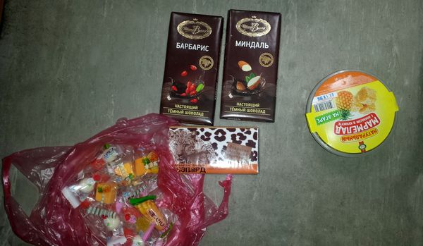 Вот такие вкусняшки от нее пришли. Шоколад местного производства и конфетки прямиком из китая.