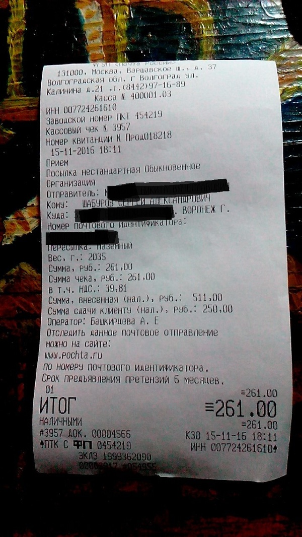 Обговорили цену, вышла посылка в 1500 (обещал за детали) и пересылка 110 коробка + 261 руб пересылка. Я все отправил: