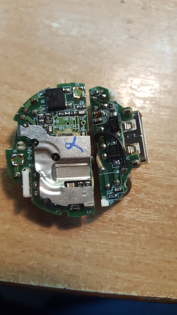 Разбор данного СЗУ начинаю с установки ножа в паз между верхней крышкой и основной частью, затем бью по ножу молотком, ну и, естественно, крышка, осознав всю серьёзность происходящего, отделяется. Далее достаю плату и подвергаю её визуальной диагностике, ага, вижу кольцевые трещины на пайке разъема usb, тыкаю в них своим паялом и усе, проверяю, собираю. Какой-то вот такой ремонт. Возможно, кому-нибудь будет полезно