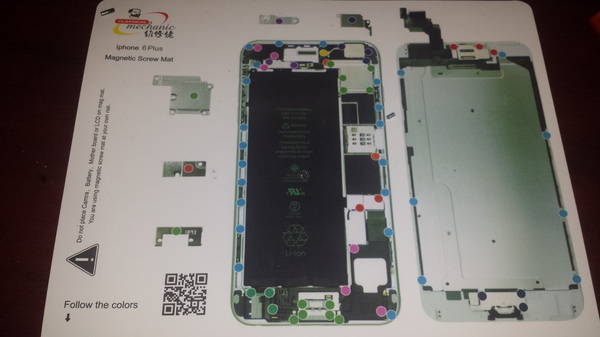 Чтоб не растерять винтики и запомнить какой куда вставляется, можно купить вот такой магнитный коврик с рисунком потрⱯшков айфона. На коврике нарисовано, какой откуда и куда должен вставляться. Просто винтики выкручиваешь и кладешь на цветные пятнышки.