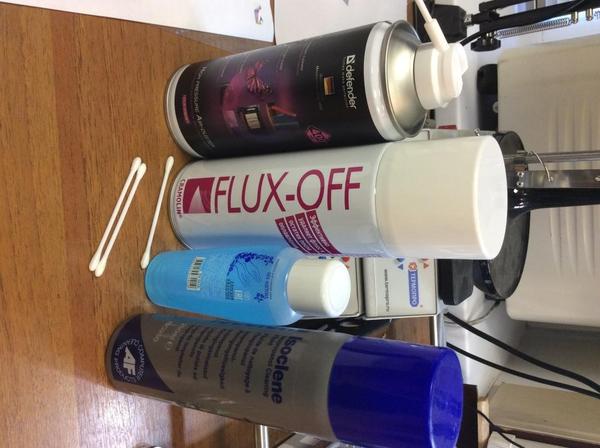 Из чистящих средств используем, Isoclene и обычную жидкость для снятия лака)))