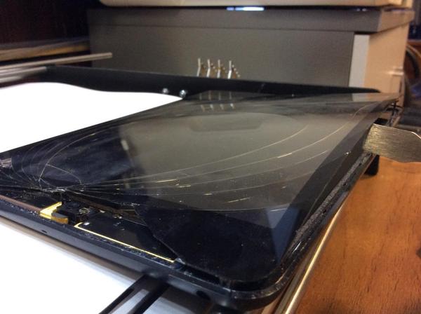 После того как тач приподнят, в дело вступает сама лопатка, ну а дальше маленькими движениями поднимаем его в верх. Для тех кто боится,абсолютно не стоит, хуже ему уже не будет. Только аккуратнее не стоит вставлять слишком далеко, т.к. можете повредить матрицу.