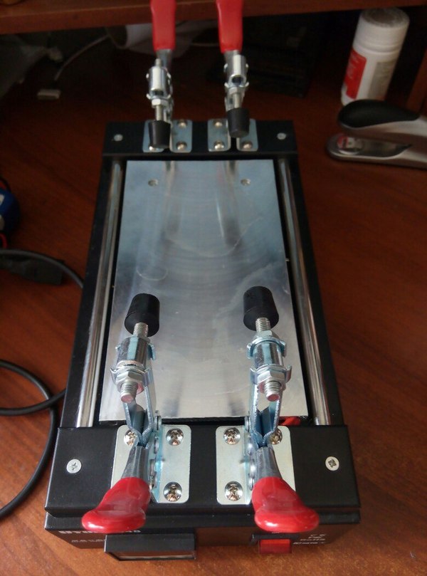 Покупаем детали, делаем плату любым способом, хотя бы ЛУТ-ом . Дорожки необходимо залудить. Если не все, то силовые обязательно покрываем толстым слоем припоя. Затем сверлим и собираем. Должна получиться такая конструкция, версия с ножевыми контактами, в этой версии контактов заземления нет: