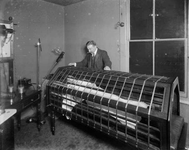 Женщина в электрической ванне в Институте ухода за светом, около 1900 года.