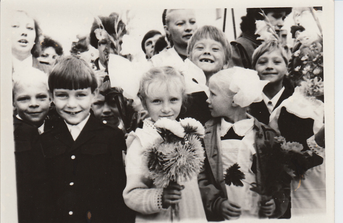 А это моя старшая дочь Таня позирует с простеньким букетиком.