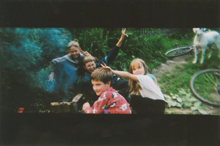 Лето, дача, костер, велосипеды. Тимоха, я, Лиза и Ваня на переднем плане. Год 97 или 98.