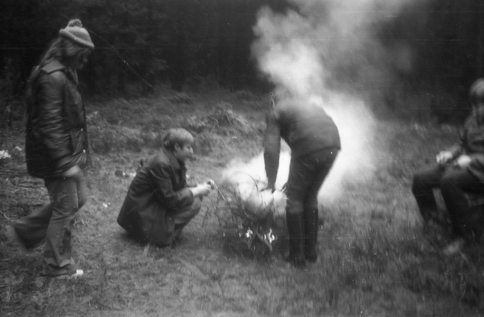 Мы обожали походы с ночевками, в них особо остро чувствовалось, что мы - одно особое родственное племя. Мы любили сидеть ночью - наше племя у пламени - и петь песни под печеную картошку с чаем из закопченного котелка.