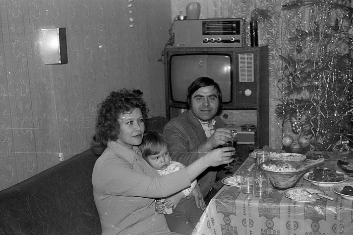 139 oitru Ретро фото Встреча нового года, Ленинград, 1979-й год 11 месяцев назад Снимки сделаны 31.12.1979 г.01. Новогодний стол, бутылка шампанского, салаты - всё очень скромно 02. Небольшая ёлочка 03. Отец и ребёнок. 04. Родители. 04. Гости Источник: скан негатива из личного собрания, автор неизвестен. Показать полностью 5 [моё] Старое фото Фотография Пленка 70-е Историческое фото Новый Год Сделано в СССР Детство в СССР Фотограф 80-е Ленинград Длиннопост 8 1 Ещё 0