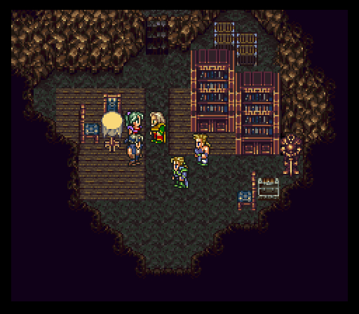 Локк и Селес попадают в сложную сеть подземных коридоров, лестниц и небольших помещений, где им приходится снова ощупывать стены в поисках выхода. Впрочем, здесь их ждут новые удивительные находки: склянка турбо-эфиром (в FF IV он назывался "сухой эфир"); "зелье X" - доселе невиданный мощный тип лечебного зелья, который быстро излечивает любые раны, полностью восстанавливая здоровье человека; шёлковая лента для волос, пропитанная мощнейшими защитными чарами; тяжёлый железный доспех; изящная серьга, которая, как выяснится позже, на четверть усиливает мощь боевых заклинаний.