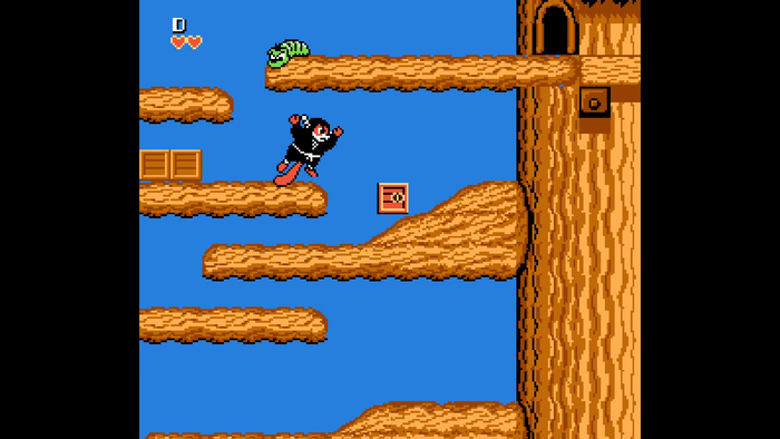 Забор, кусты и видимо это какой-то сад. Из врагов свисающие с забора коконы, жуки в кустах, некоторые части забора падают, нужно быть аккуратным, пробегаем уровень и во второй части, появляются прыгающие ящики, в большом ящике лодка которую нам оставила Гаечка по сюжету, садимся и переплываем на другой берег, там в ящике молоток, с помощью которого ломаем каменную стену, этим же молотком можно и убирать с уровня врагов. Третья часть уровня, там появляются зыбучие пески на дне которых сидит жук, это место просто нужно перепрыгнуть, там еще летают мухи, так что лучше всего иметь при себе ящик.