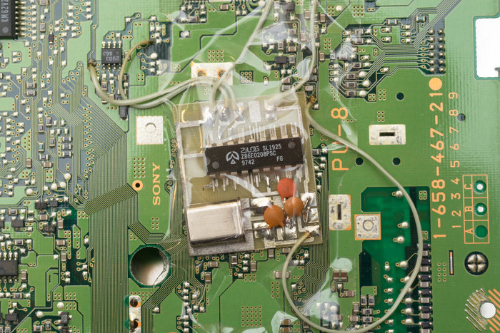 А мод чип оказался припаянным снизу и весьма меня удивил.