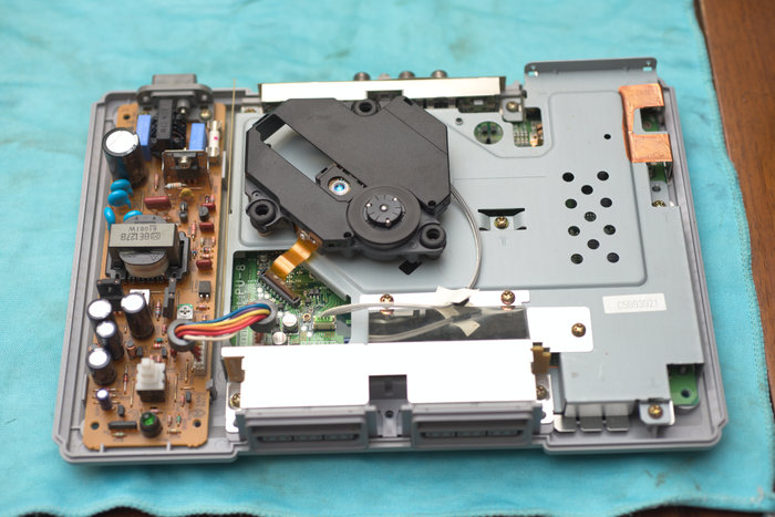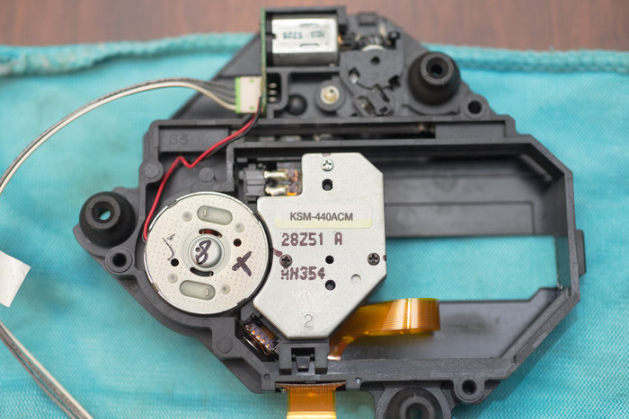 Шпиндель вроде ок, линзы тоже выглядт норм. Хотя я знаю, что лазер "сел" и читает еле еле.