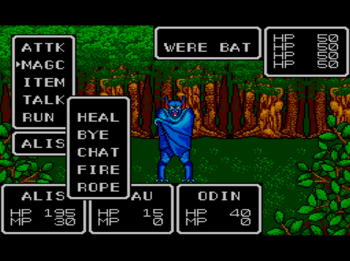 В бою Мяу может царапаться, но главная его ценность - это мощная целительная магия, которой он владеет. Купив фонарик, Элис и Мяу возвращаются на Палму и отправляются к пещере Медузы.