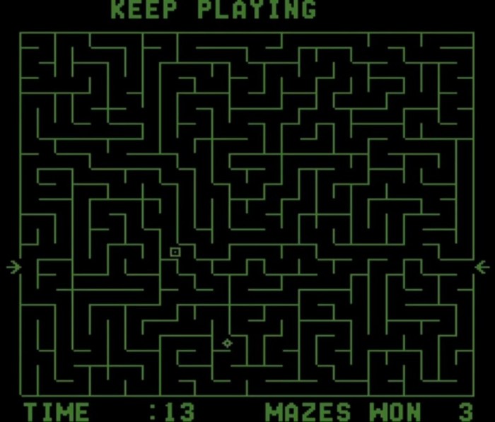 В этой игре для 2 игроков один (квадратик) преследует другого (плюсик) внутри постоянно меняющегося лабиринта. Собственно, это первая игра-лабиринт, родоначальник жанра.
