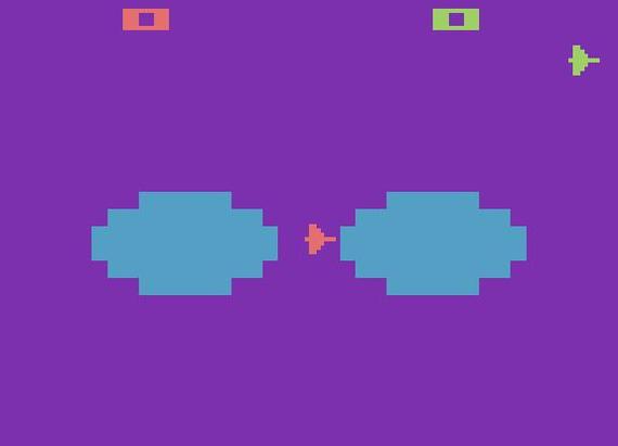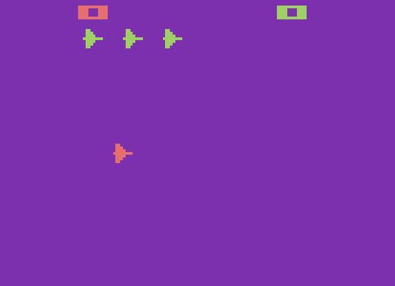 Здесь игроку предстоит, управляя космическим кораблём-ракетой, сражаться с двумя летающими тарелками. Надо сказать, тарелочки невероятно метко стреляют! Они безошибочно берут упреждение, так что единственный способ выжить - это всё время маневрировать. Но и тарелки уклоняются от ваших выстрелов, резко меняя курс! В общем, добро пожаловать в мир лютейшего хардкора! )