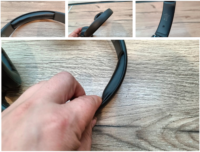 Для регулировки вылета чашей наушников предусмотрены направляющие с каждой стороны оголовья. Всего предусмотрено по 9 фиксированных положений с каждой стороны. Это позволит подобрать наиболее удобный охват головы с индивидуальным размещением чашей на ушах пользователя. Я остановился на 3 положении с каждой стороны или по 6 щелчков. Маркировка направленности "R" и "L" разместили на оголовье.