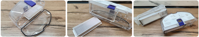 А также есть многоразовый контейнер объемом в 800 мл. Выполнен он из прозрачного пластика. Также есть многоразовый съемный НЕРА фильтр, обратный клапан на входное отверстие и удобные защелки при опорожнении. Используется многоразовая система фильтрации с отсеиванием крупного мусора за счет сетки и полная фильтрация мелких элементов за счет НЕРА фильтра.