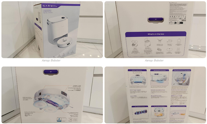 Двойная картонная коробка, одна из которых обычная транспортировочная, а вторая с цветной полиграфией и детальной информацией по роботу пылесосу. На второй коробке присутствует изображение устройства с нескольких ракурсов, перечислены используемые технологии и преимущества данной модели пылесоса. Внутри есть дополнительные пенопластовые вставки, которые образуют капсулы с охватом на 360 градусов всех элементов. Коробки довольно тяжелые и перемещать их лучше с напарником. Даже при случайном повреждении коробки, внутренности не пострадают, благодаря усиленной защите.