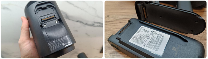 Оба пылесоса работают от переставного блока с встроенным двигателем и информационным экраном, а также аккумуляторным блоком. Но зарядка аккумуляторов происходит только в пылесосе для влажной уборки, там же они и должны храниться.