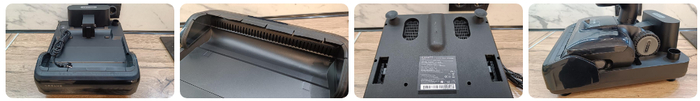 Пылесос для влажной уборки хранится на своей станции самоочистки и дальнейшей сушки. Устойчивая платформа с большим отсеком под пылесос. Станция позволяет сушить ролик в полугерметичном отсеке при температуре в 90 градусов всего за 5 минут. На станции есть контакты зарядки аккумулятора. На нижней поверхности сразу 4 резиновых присоски, которые крепко удерживают платформу на плитке или ламинате.