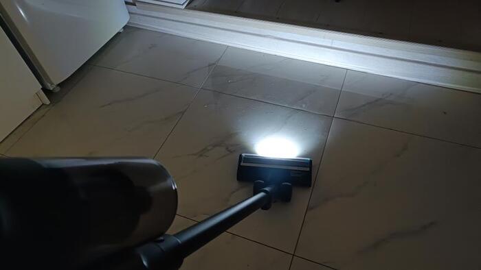 На основной щетке есть светодиодная подсветка зоны уборки. Яркости достаточно, чтобы убираться даже в полной темноте.